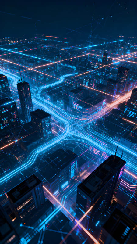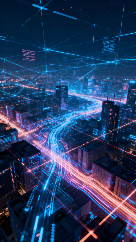 霓虹灯映照下的未来都市夜景