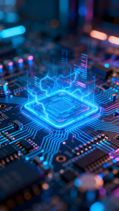 电路板上的蓝色能量核心