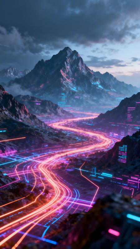 赛博朋克山脉数据传输景象