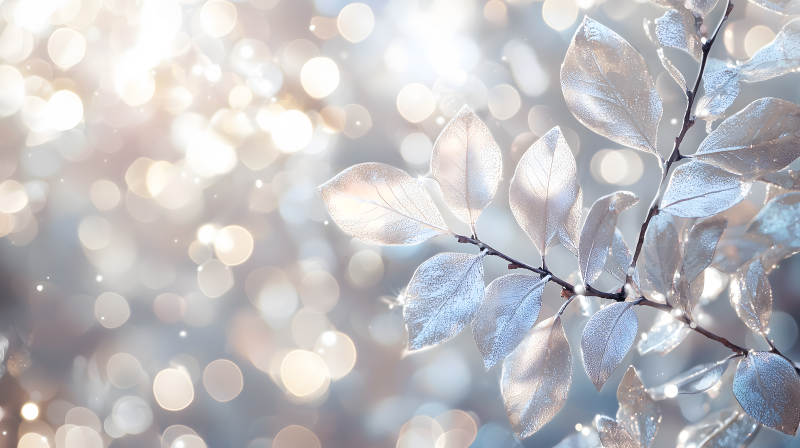 冰霜叶片上的光影诗意
