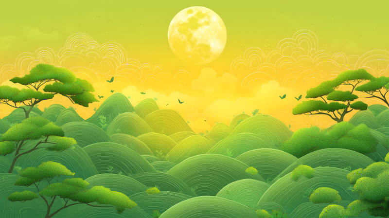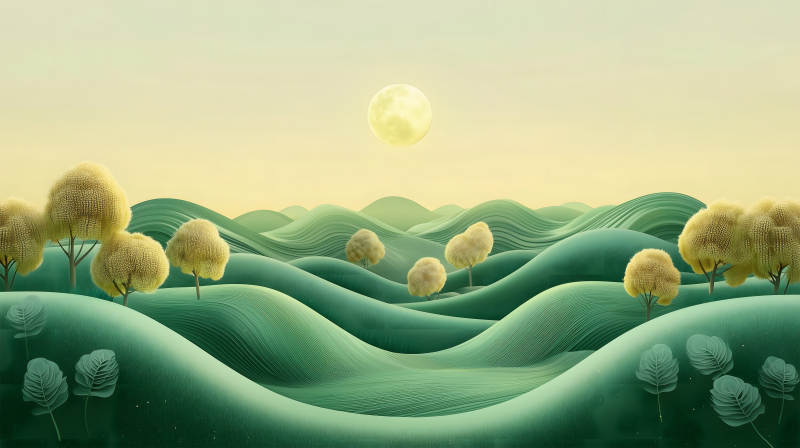 山间明月夜水墨山河月色