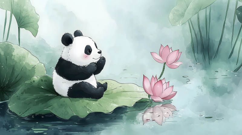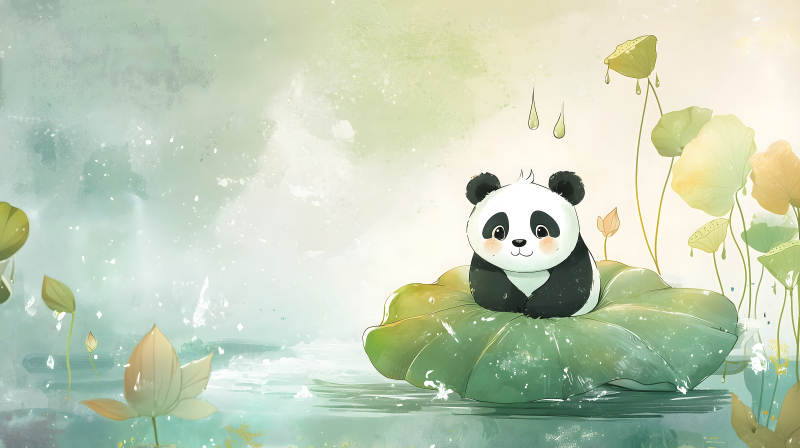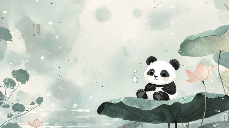 莲叶上的熊猫宝宝