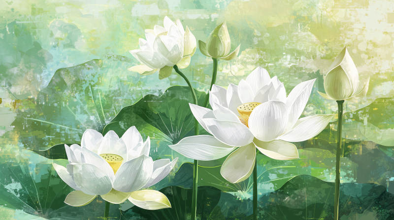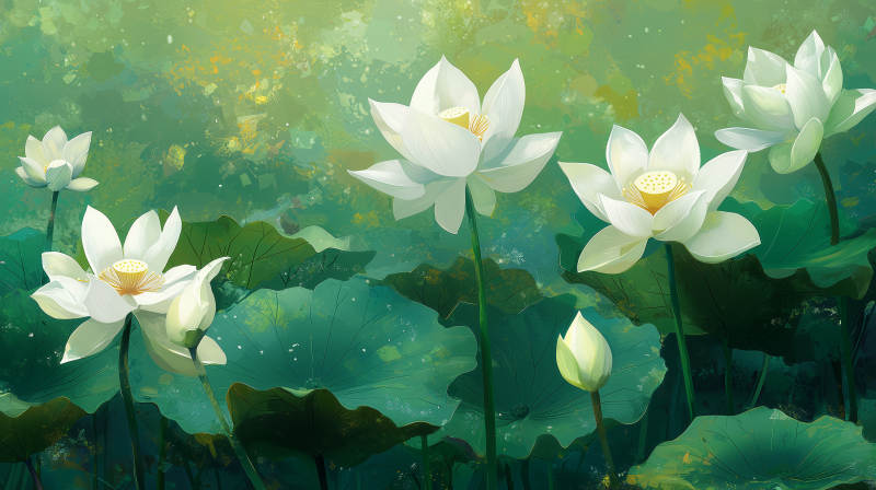 清雅白莲荷塘清韵