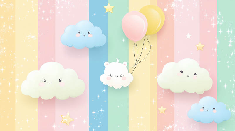 卡通云朵星星条纹背景