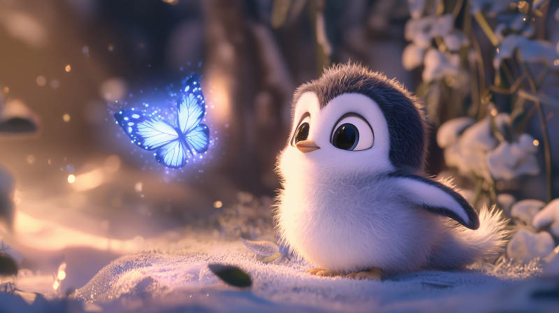 蓝色企鹅与萤火蝴蝶