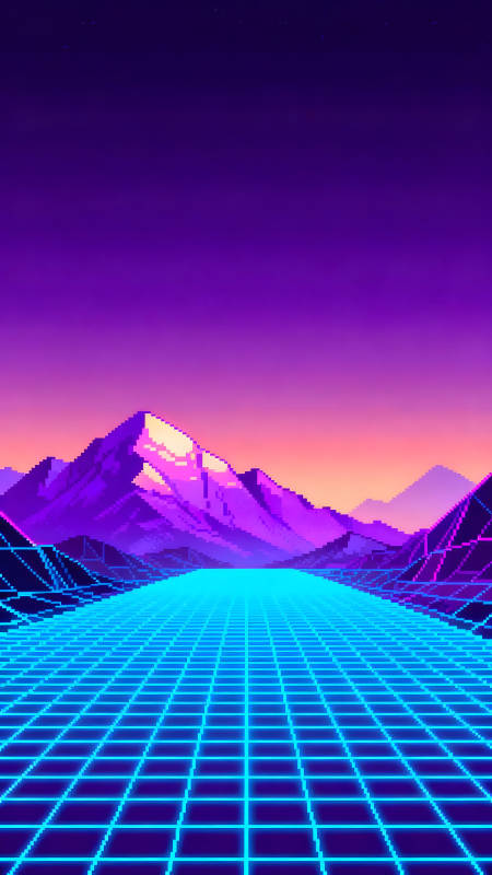 像素风格风景霓虹光线山脉