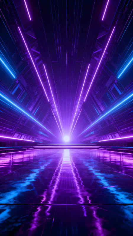 赛博朋克风格发光隧道反射光线