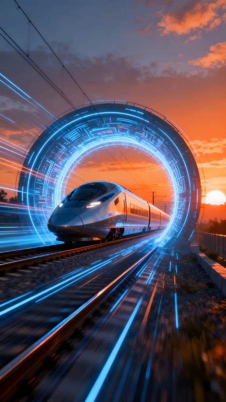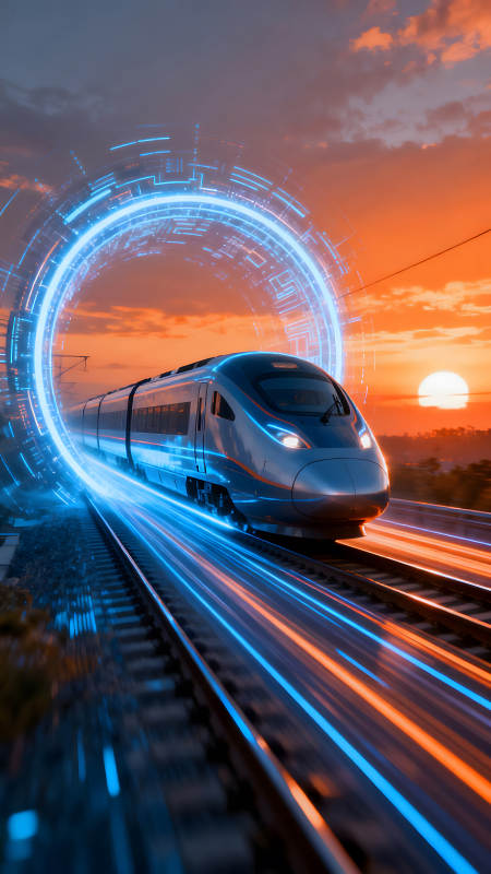 高速列车穿梭未来时空景象