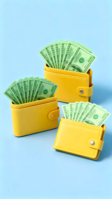 钱包与百元美钞的特写展示