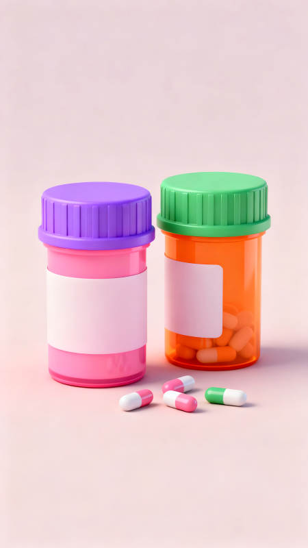 药品瓶和药丸的卡通渲染