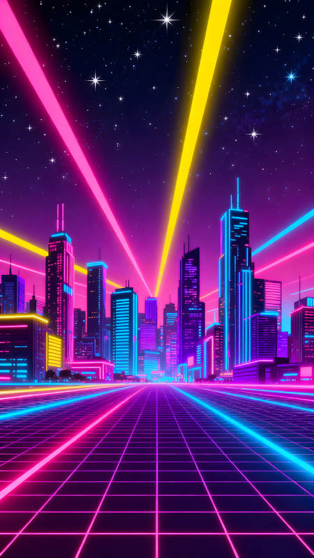 霓虹城市夜景下的复古未来风