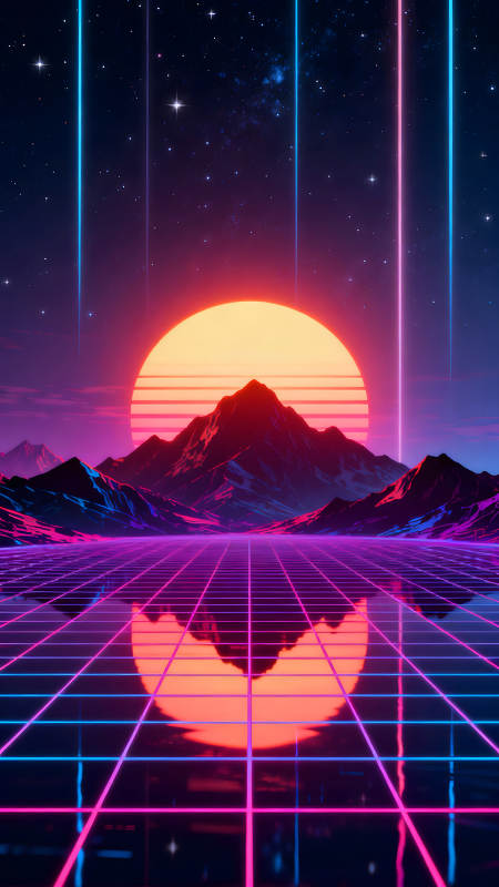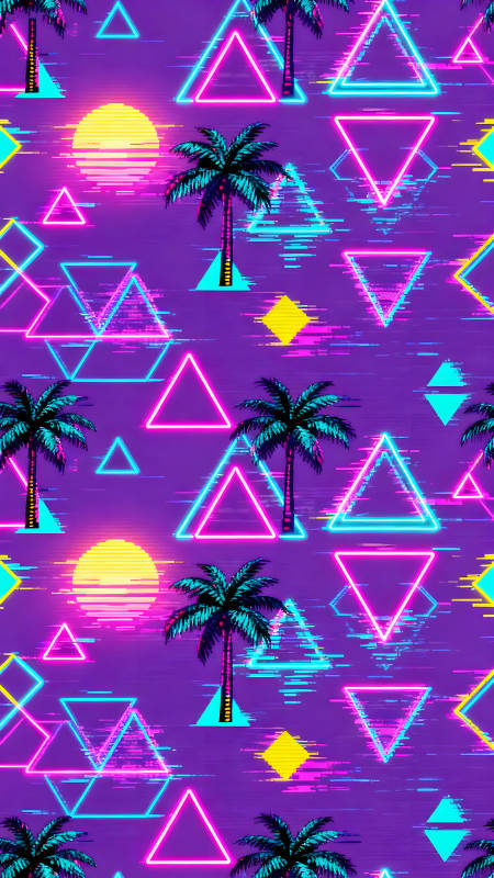 霓虹灯风格的复古热带风景