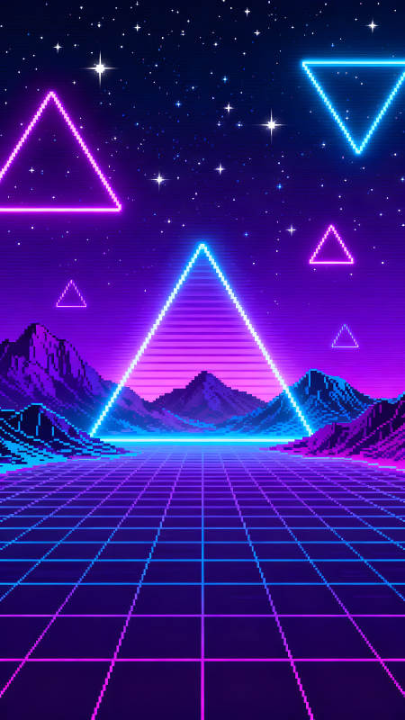 赛博朋克风格的星空与几何图形