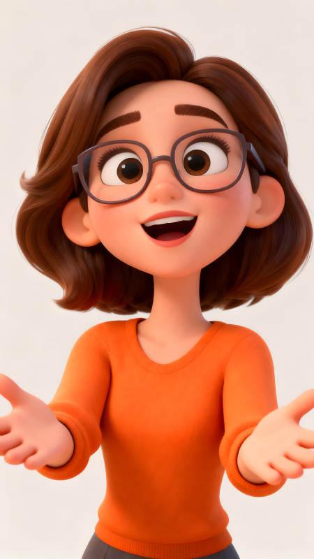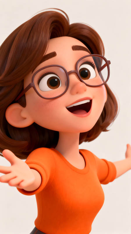 卡通女孩张开双臂欢迎
