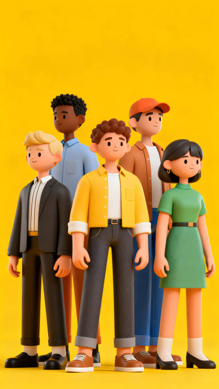 卡通人物合影黄色背景