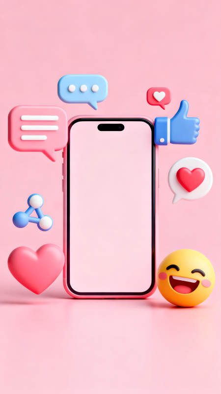 社交媒体手机与图标的粉色背景