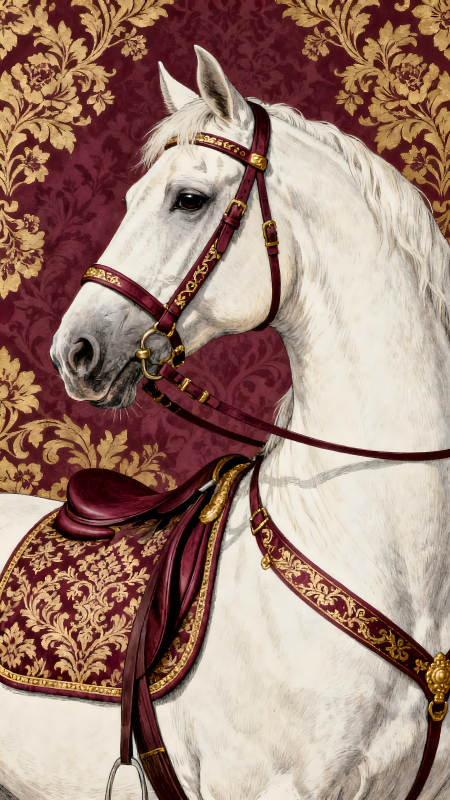 白马配红鞍饰