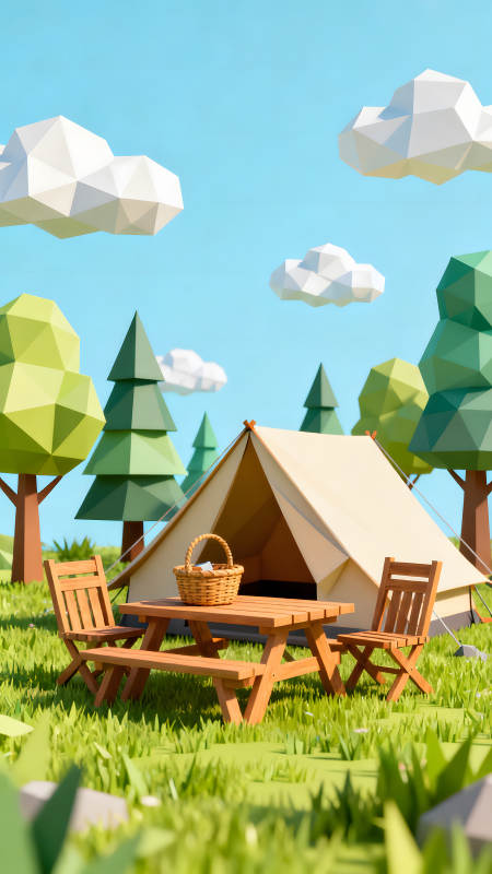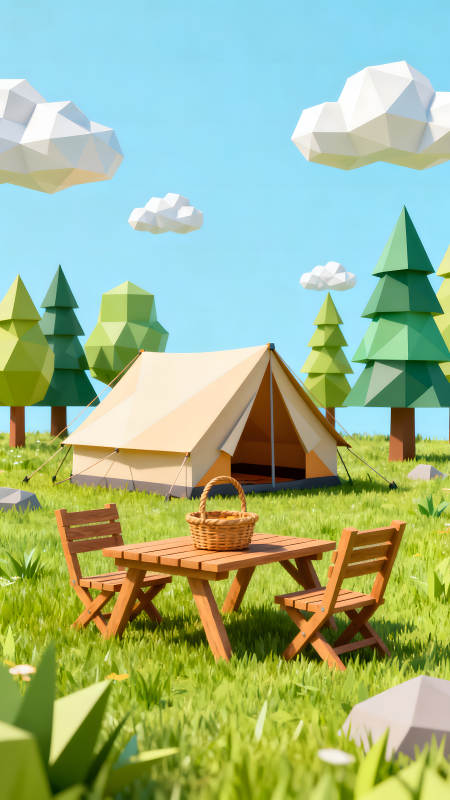 卡通露营场景野餐桌帐篷风景