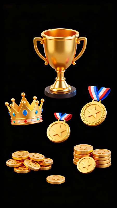 金光闪闪的奖杯皇冠和金币