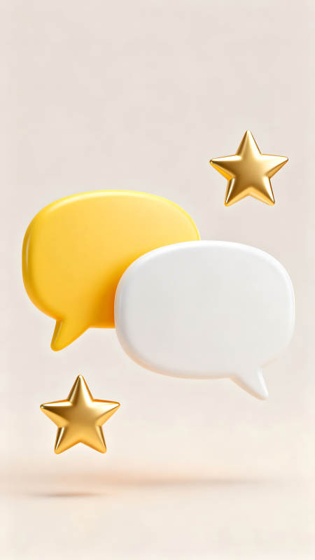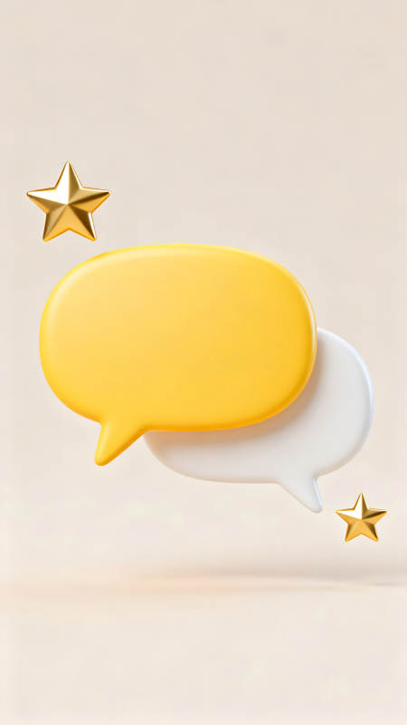 两个对话气泡和两颗星星的3D效果