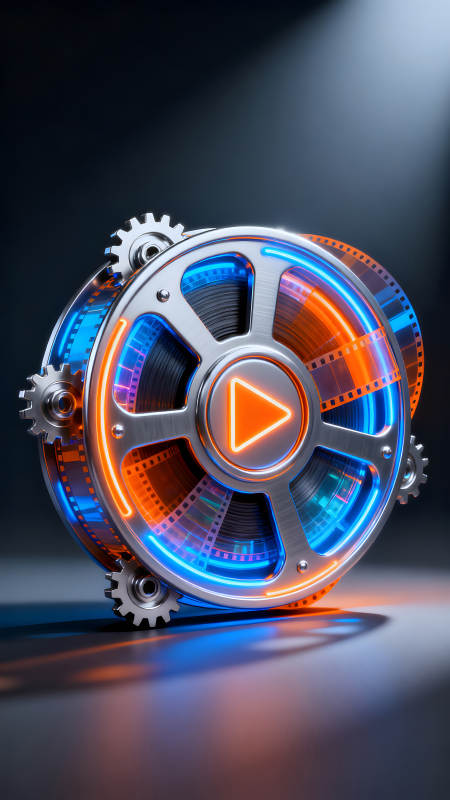 电影胶片卷轴与橙蓝色光效