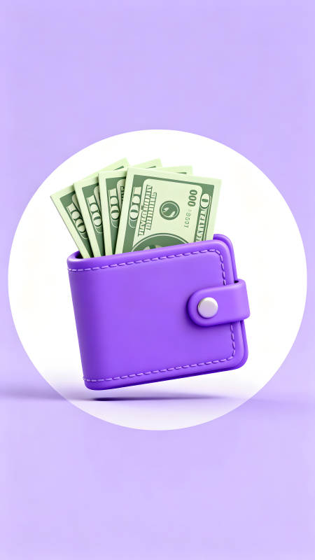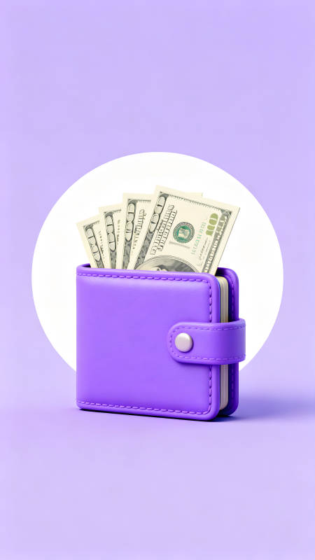 紫色钱包装满美元钞票