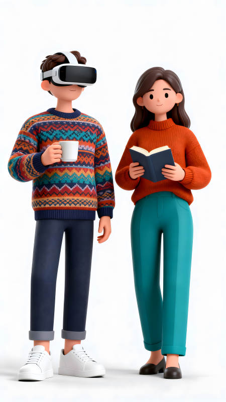 VR爱好者和读书人形象展示