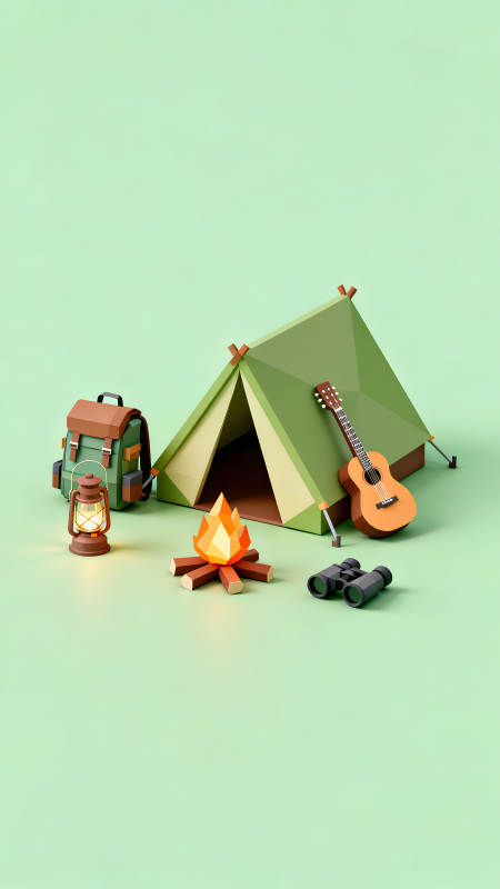 露营的装备卡通风格背景