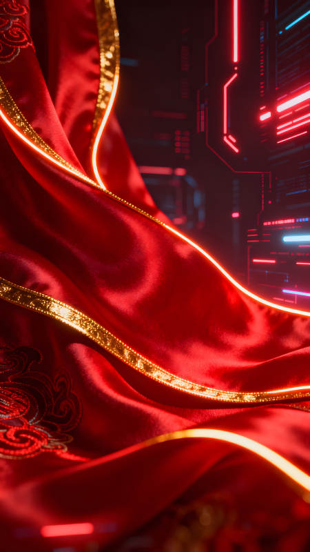 红色绸缎与科技感的碰撞