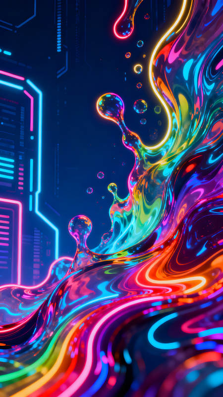 霓虹液体与科技背景的绚丽融合