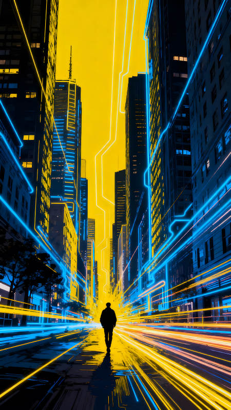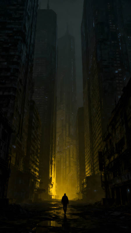 未来城市中的孤独行走者