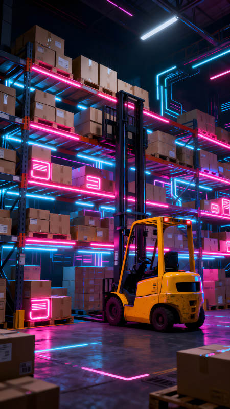 霓虹灯仓库内的叉车