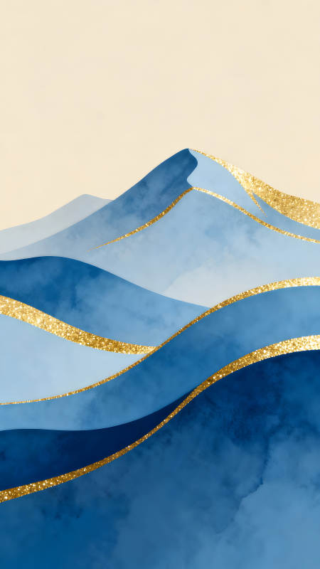 蓝色山峦金色线条抽象艺术