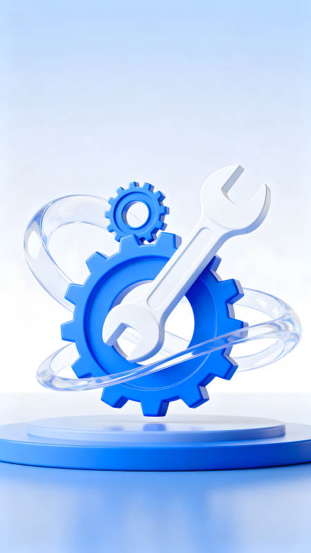蓝色的齿轮和扳手组合的设计