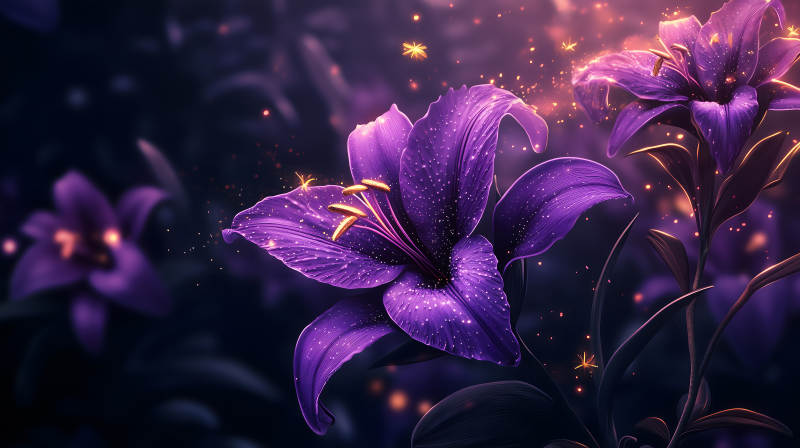 星光闪耀的紫色百合