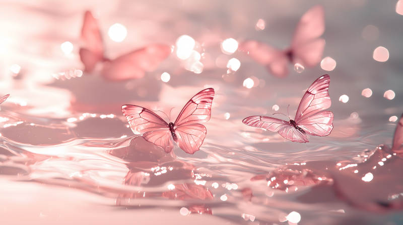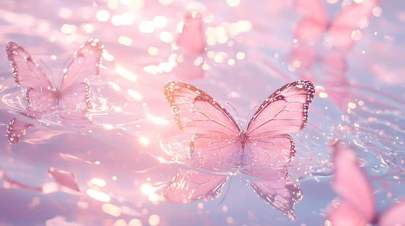 粉红蝴蝶与波光粼粼