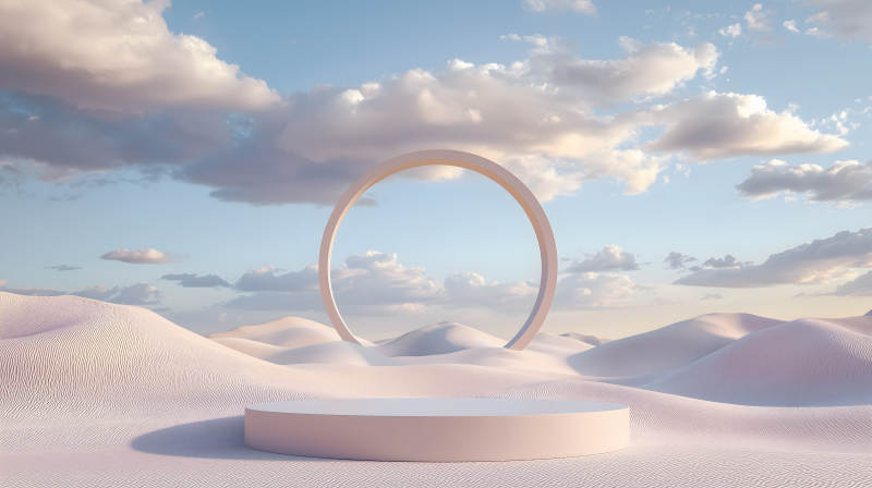 沙漠日出与几何展示台