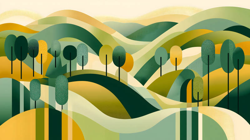 抽象派绿黄山丘风景