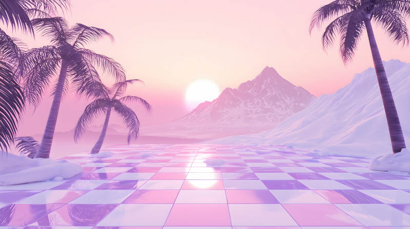 粉色梦幻雪山椰林