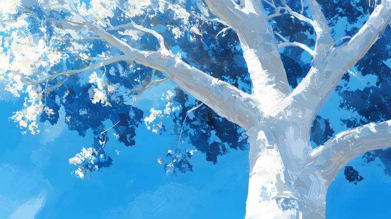 蓝天白树