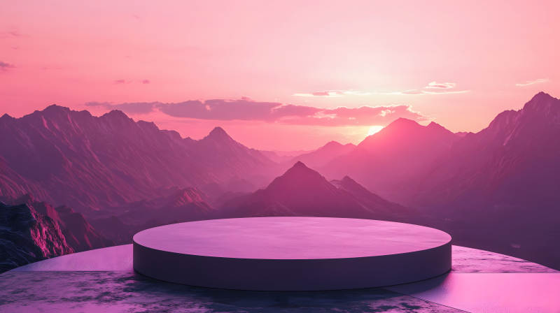 日落山峰上的圆形展示台