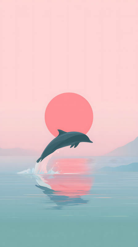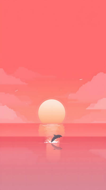 日落时分海豚跃起
