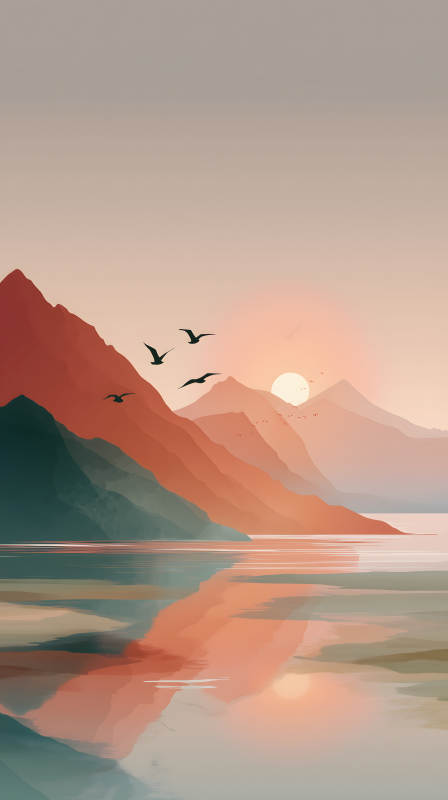 日落山峦静谧湖泊