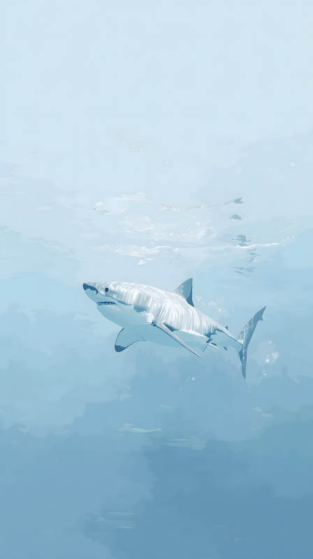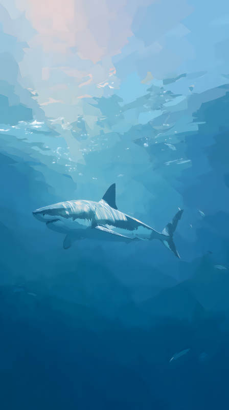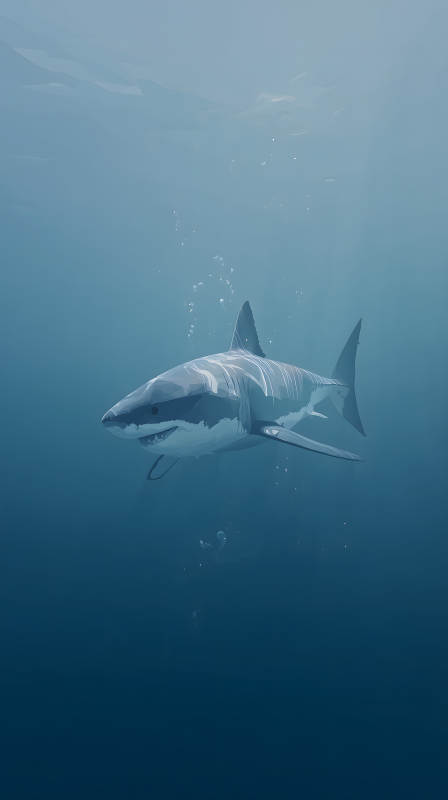幽静深海中的大白鲨