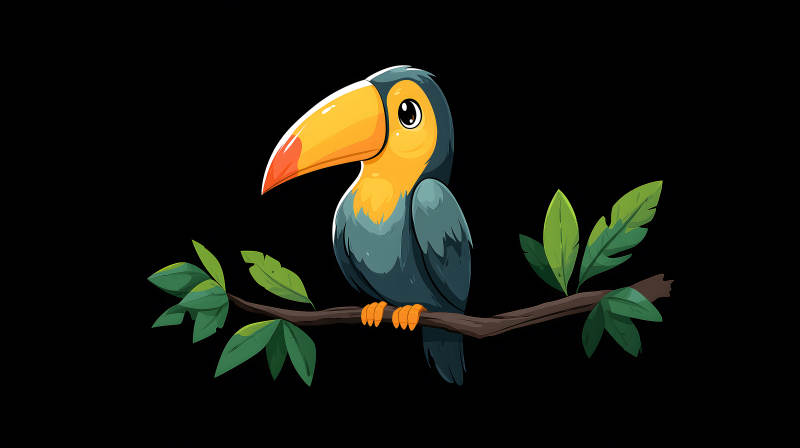 卡通图画:树枝上的巨嘴鸟