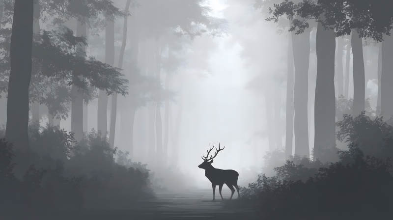 雾气森林中的雄鹿