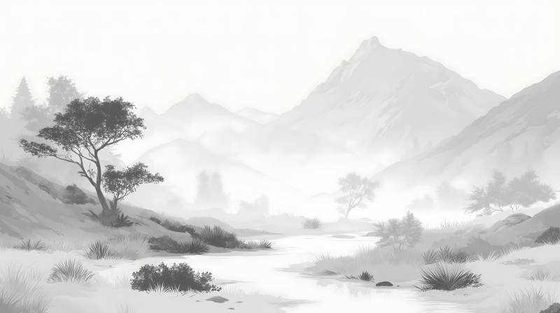 水墨风格的山川河流图
