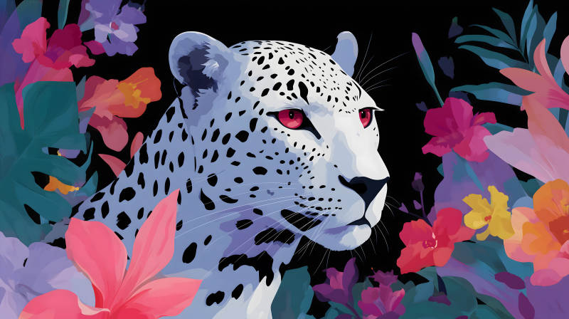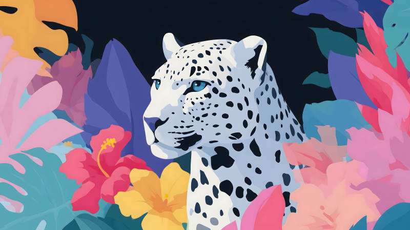 雪豹与热带花卉