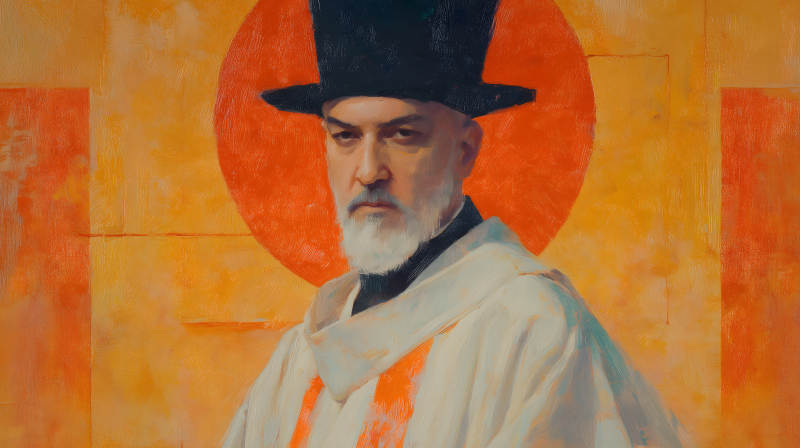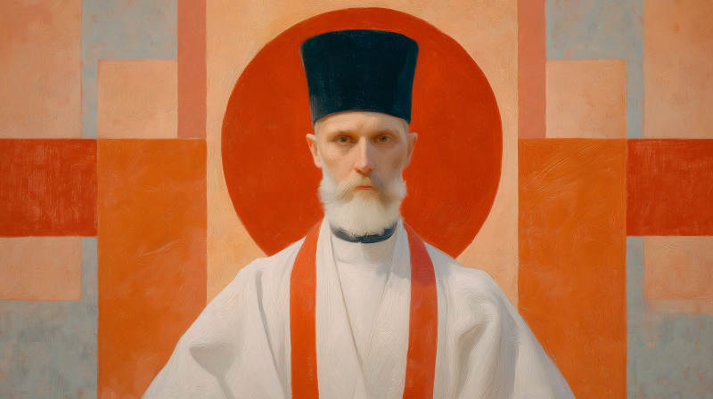神父肖像与几何背景