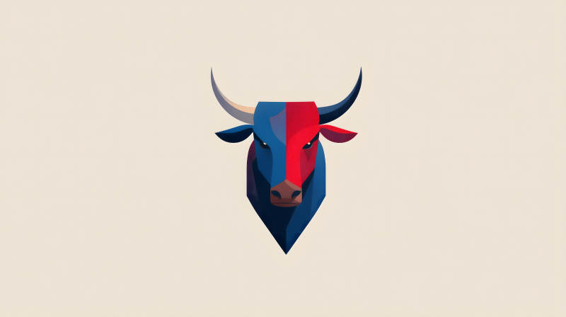 抽象风格的蓝色红色牛头